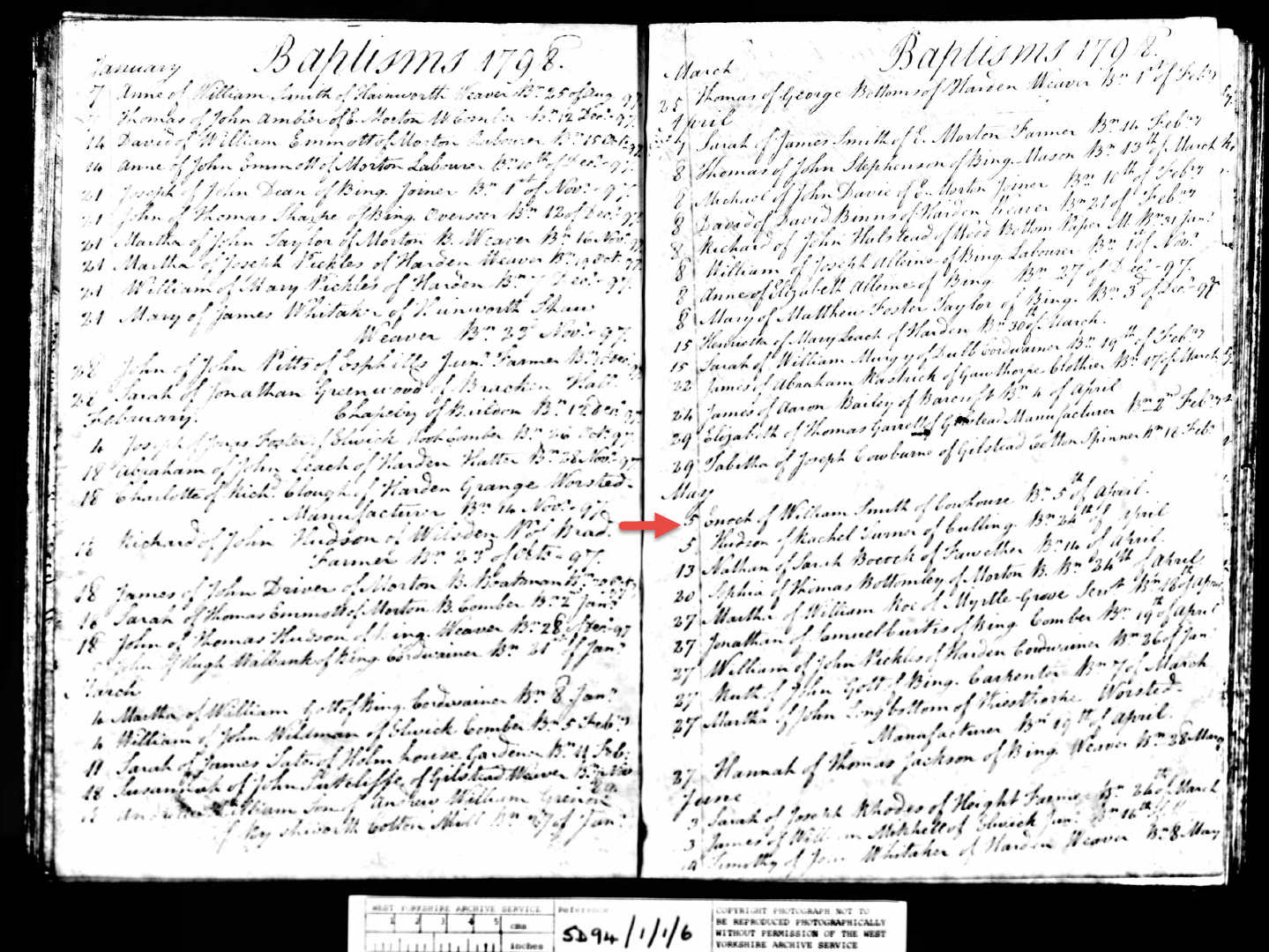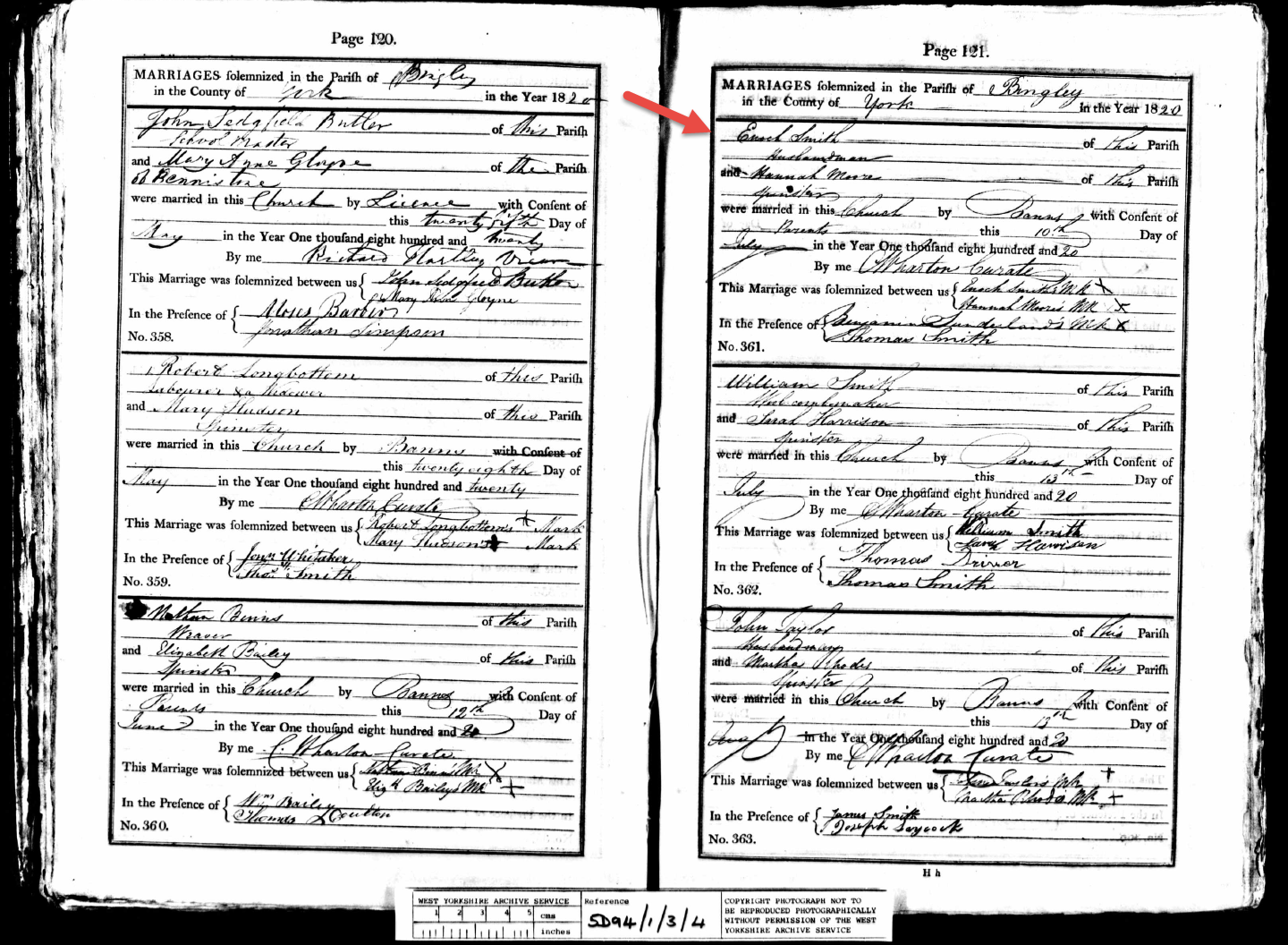 Enoch Smith, the oldest son of William and Jane Smith, was born on April 5, 1798. He was baptized at the parish church of All Saints in Bingley on May 5, 1798. According to their website, “All Saints is the parish church of Bingley, a beautiful market town in West Yorkshire. It is an ancient church which has served the congregation and people of Bingley for over a thousand years.” Check out All Saints’ website for more information.
