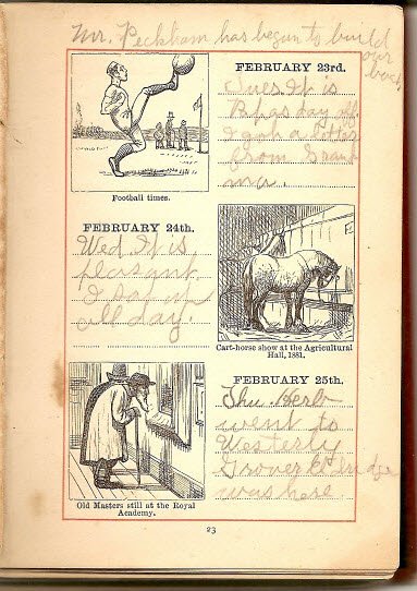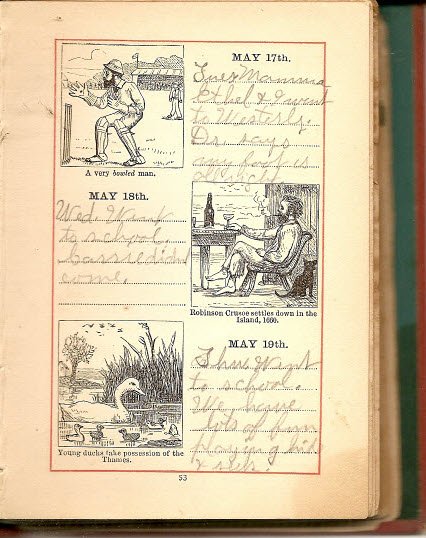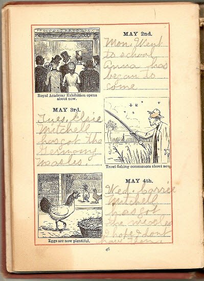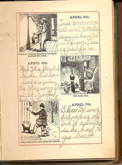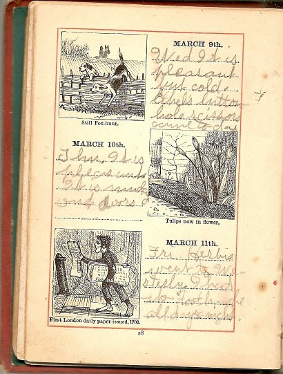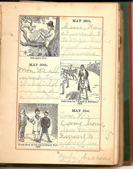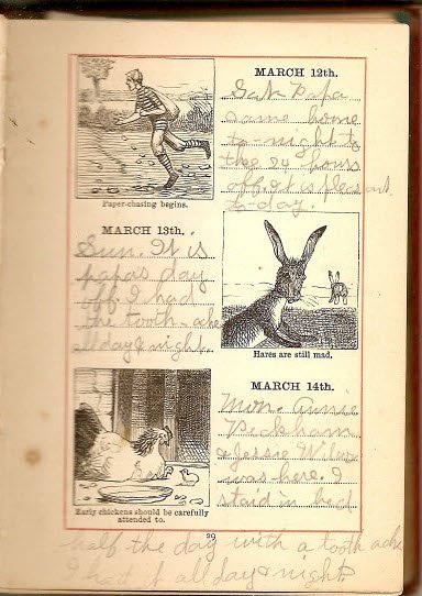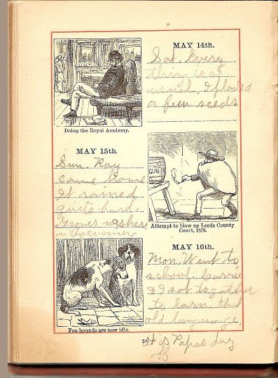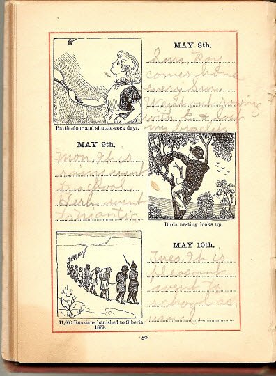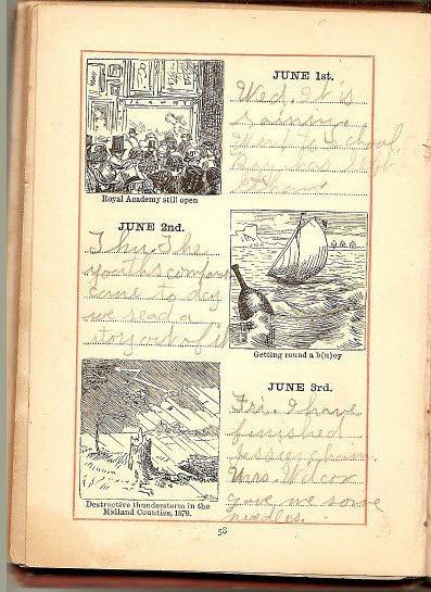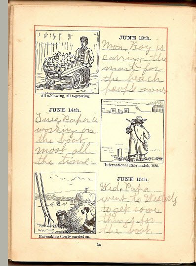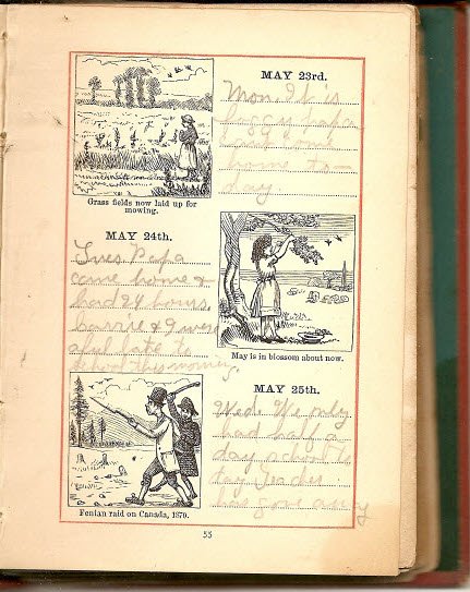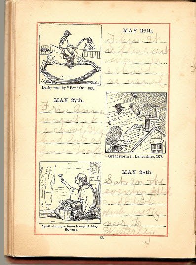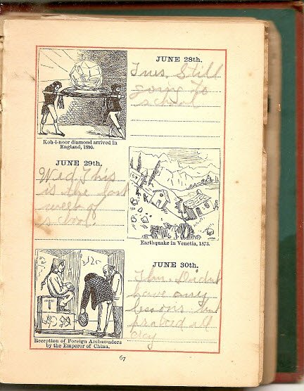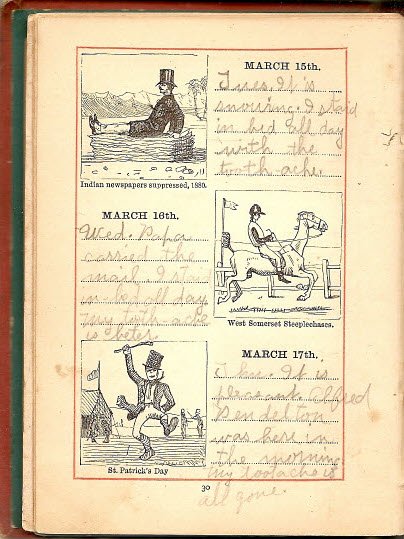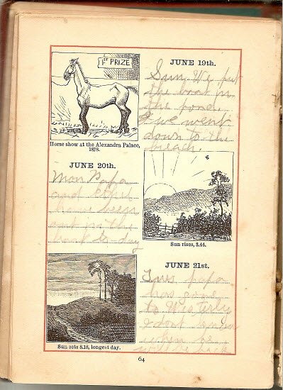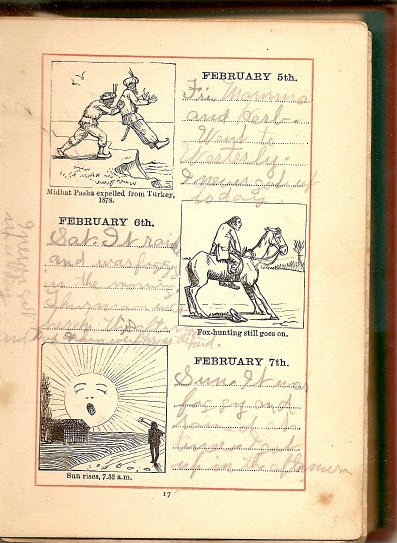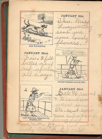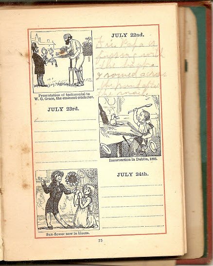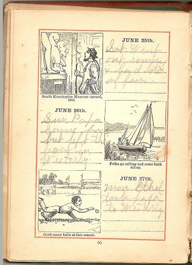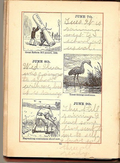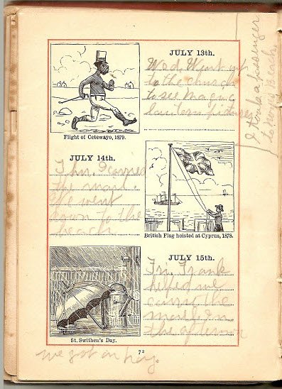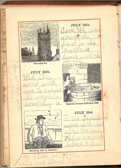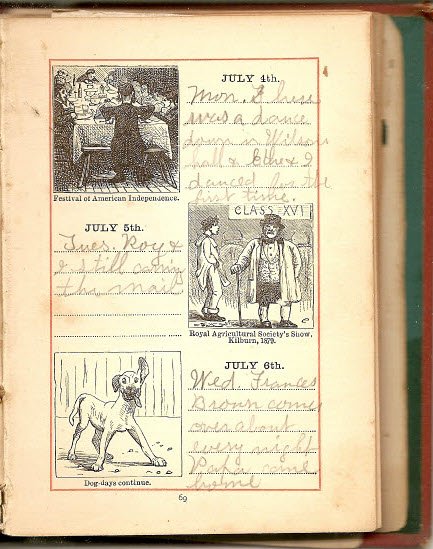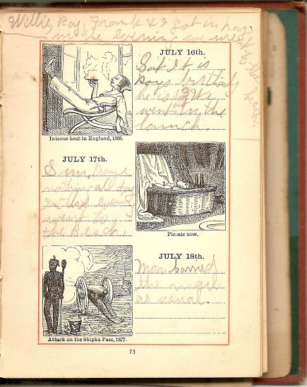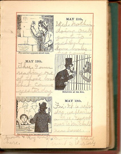 Martha made entries in the diary until the middle of July. She spends a lot of time in bed while her feet are healing, but has a lot of visitors. She is up and around and planting a flower garden in May.