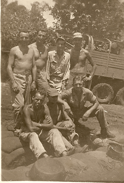 Got up early – had a little to eat and a cup of lousy coffee at the wagon. Helped to pile up a few drums of gas then went swimming in the ocean for about an hour. After a little while hopped on a Jeep that was going to the new area? Was on the road till about 9 P.M. and finally was guided into our area where our convoy was to be reorganized. Tried to sleep on the front seat of the Jeep. Mosquitoes just about ate me up and was generally uncomfortable. Enemy planes came over 3 times. Dropped bombs on the first run a long way from us. No bombs were dropped on the second run. The third time the plane came up the valley where we were camped which made us quite nervous since we were camped in a Jap ammo and gas dump. Also, a lot of Jap equipment around.