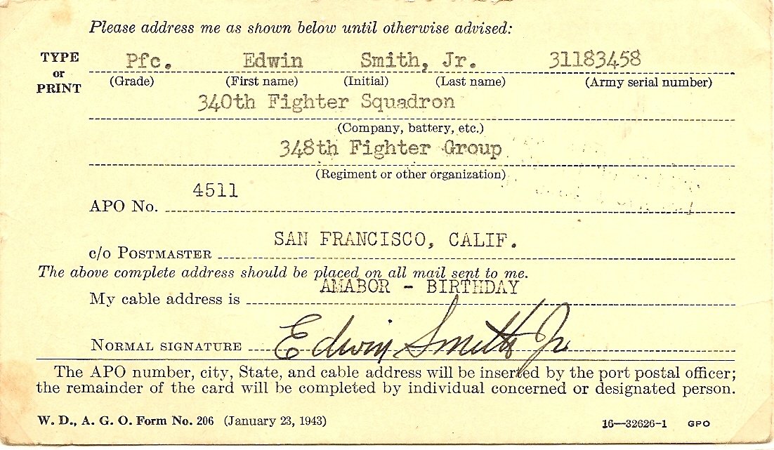 Have you been able to see Joe Singer yet? Have you received your clothes? I’ve been worrying about you with your darned socks. I ironed all your handkerchiefs yesterday so if you need any just give a yell. By the way – you don’t need stamps – You’re in the army now.