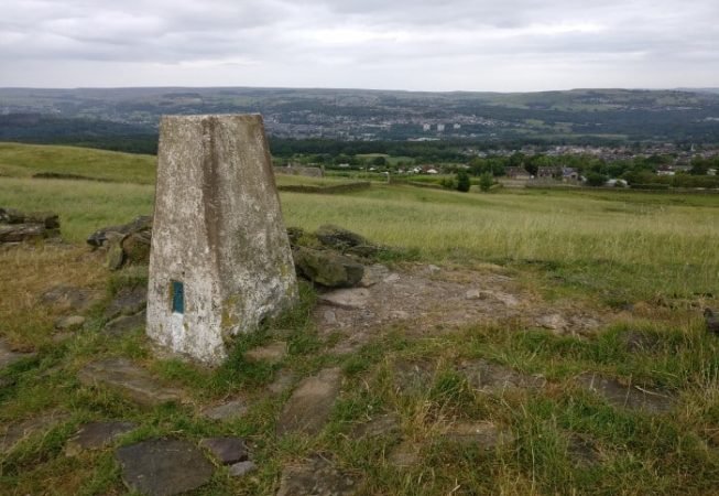View of the Aire Valley from Noor Hill summit (262m) with trig point